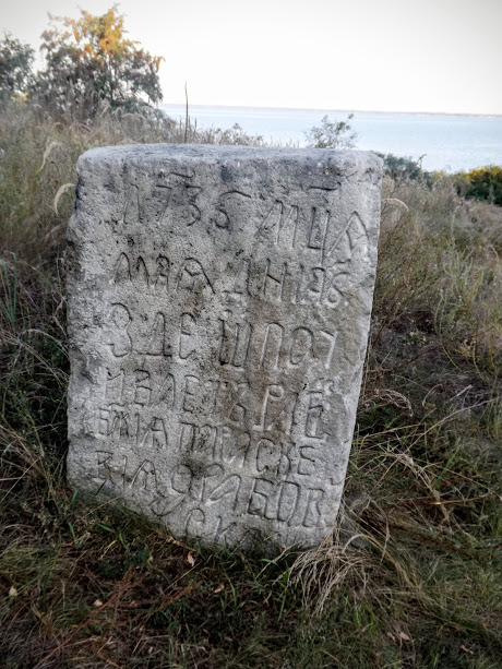 Поряд із пляжем та «столичним» хрестом стоїть кам’яний надгробок із написом «1735 мцѧ маѧ дніа 6. Здє ωпочиваєтъ раба Бжiѧ Параскєвіѧ Грабовскаѧ». Скоріше за все, цей могильний камінь було знайдено під час розчищення ділянки берега для пляжу. Поряд на пагорбі міститься старе кладовище, яке в більшості туристичних довідників називають козацьким, однак якщо придивитися, то можна побачити, що більшість поховань датуються ХІХ – першою половиною ХХ століття: традиція ставити надгробки із піщанику і робити на них написи шрифтом, не схожим на «гражданку», може ввести в оману багатьох.